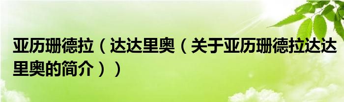 大家好,亚历珊德拉 达达里奥,关于亚历珊德拉 达达里奥的简介很多人还不知道,现在让我们一起来看看吧!