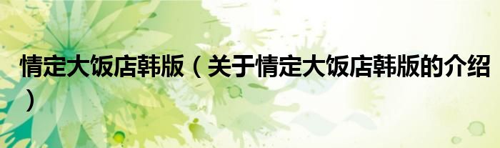 大家好,小安来为大家解答以上的问题。情定大饭店韩版,关于情定大饭店韩版的介绍很多人还不知道,现在让我们一起来看看吧!
