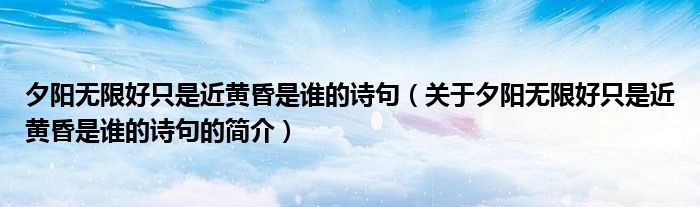 本文关于夕阳无限好只是近黄昏是谁的诗句的简介就讲解完毕,希望对大家有所帮助。