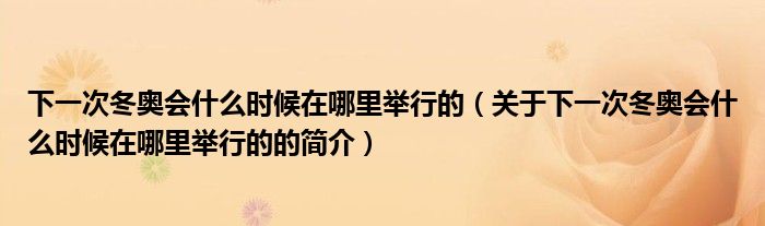 本文关于下一次冬奥会什么时候在哪里举行的的简介就讲解完毕,希望对大家有所帮助。
