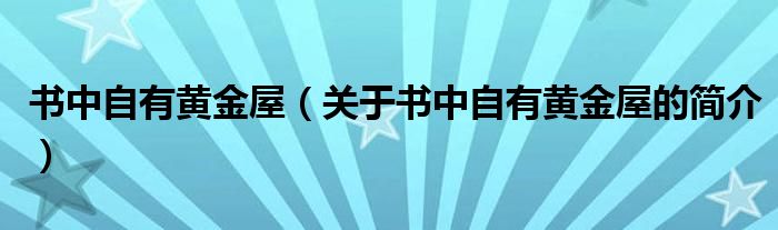 本文关于书中自有黄金屋的简介就讲解完毕,希望对大家有所帮助。