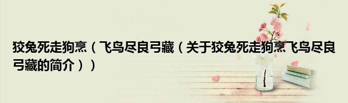 本文关于狡兔死走狗烹 飞鸟尽良弓藏的简介就讲解完毕,希望对大家有所帮助。