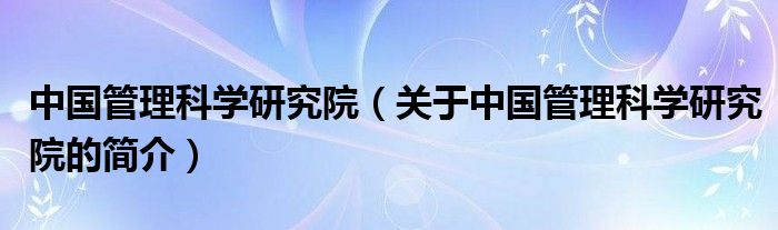 大家好,中国管理科学研究院,关于中国管理科学研究院的简介很多人还不知道,现在让我们一起来看看吧!
