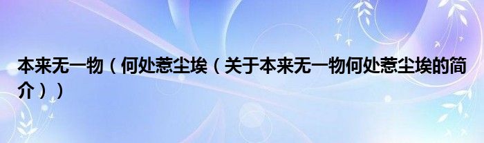 本文关于本来无一物 何处惹尘埃的简介就讲解完毕,希望对大家有所帮助。