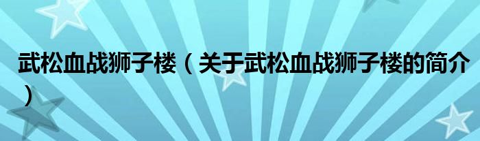 本文关于武松血战狮子楼的简介就讲解完毕,希望对大家有所帮助。