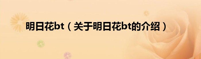 大家好,小安来为大家解答以上的问题。明日花bt,关于明日花bt的介绍很多人还不知道,现在让我们一起来看看吧!