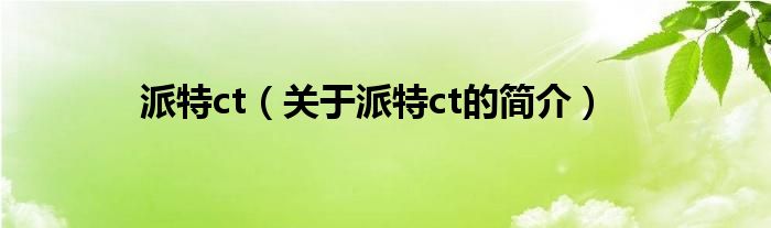 本文关于派特ct的简介就讲解完毕,希望对大家有所帮助。
