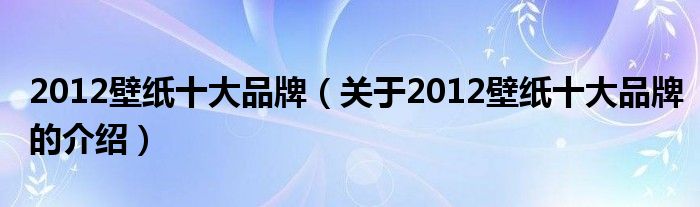 大家好,小安来为大家解答以上的问题。2012壁纸十大品牌,关于2012壁纸十大品牌的介绍很多人还不知道,现在让我们一起来看看吧!