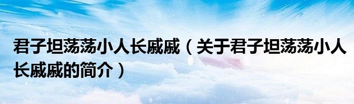 大家好,君子坦荡荡小人长戚戚,关于君子坦荡荡小人长戚戚的简介很多人还不知道,现在让我们一起来看看吧!