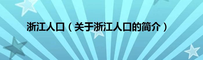 本文关于浙江人口的简介就讲解完毕,希望对大家有所帮助。