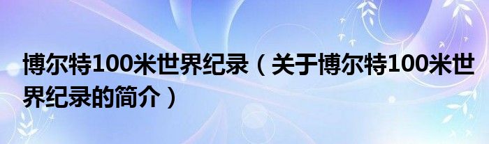 本文关于博尔特100米世界纪录的简介就讲解完毕,希望对大家有所帮助。