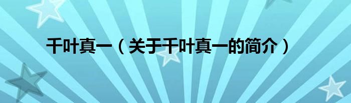 大家好,千叶真一,关于千叶真一的简介很多人还不知道,现在让我们一起来看看吧!