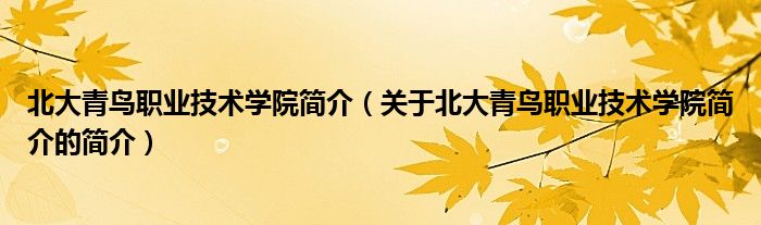 本文关于北大青鸟职业技术学院简介的简介就讲解完毕,希望对大家有所帮助。