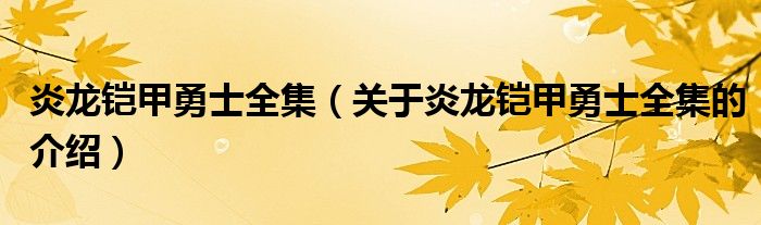 大家好,小安来为大家解答以上的问题。炎龙铠甲勇士全集,关于炎龙铠甲勇士全集的介绍很多人还不知道,现在让我们一起来看看吧!