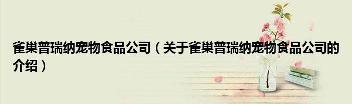 大家好,小安来为大家解答以上的问题。雀巢普瑞纳宠物食品公司,关于雀巢普瑞纳宠物食品公司的介绍很多人还不知道,现在让我们一起来看看吧!