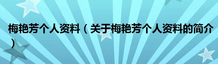 本文关于梅艳芳个人资料的简介就讲解完毕,希望对大家有所帮助。