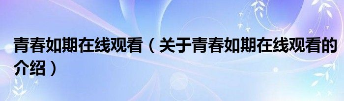 大家好,小安来为大家解答以上的问题。青春如期在线观看,关于青春如期在线观看的介绍很多人还不知道,现在让我们一起来看看吧!