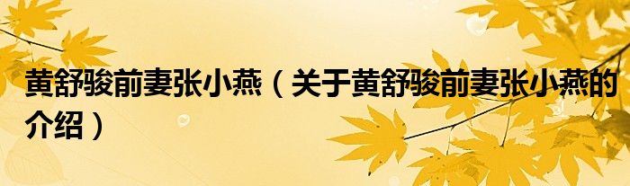 大家好,小安来为大家解答以上的问题。黄舒骏前妻张小燕,关于黄舒骏前妻张小燕的介绍很多人还不知道,现在让我们一起来看看吧!