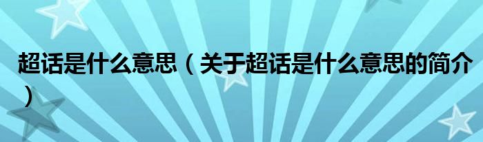 本文关于超话是什么意思的简介就讲解完毕,希望对大家有所帮助。