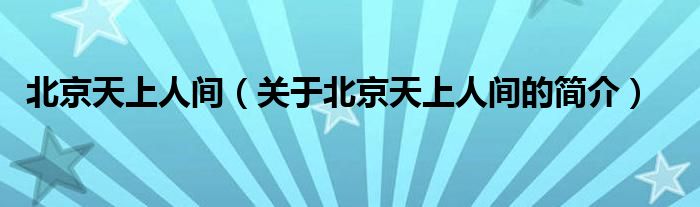大家好,北京天上人间,关于北京天上人间的简介很多人还不知道,现在让我们一起来看看吧!