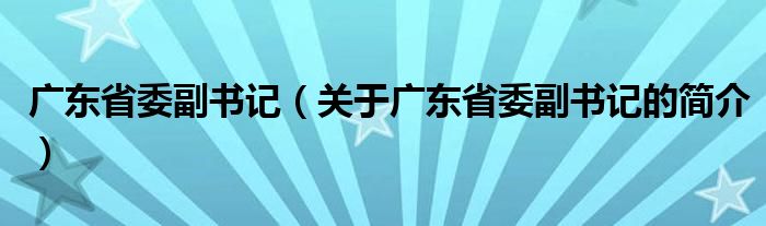 大家好,广东省委副书记,关于广东省委副书记的简介很多人还不知道,现在让我们一起来看看吧!