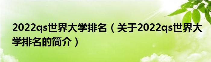 本文关于2022qs世界大学排名的简介就讲解完毕,希望对大家有所帮助。