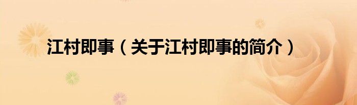 本文关于江村即事的简介就讲解完毕,希望对大家有所帮助。