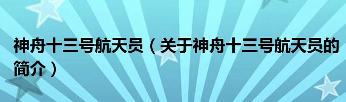 大家好,神舟十三号航天员,关于神舟十三号航天员的简介很多人还不知道,现在让我们一起来看看吧!