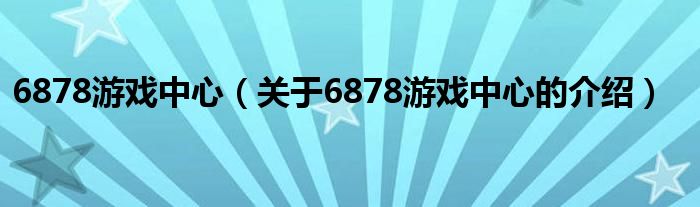 大家好,小安来为大家解答以上的问题。6878游戏中心,关于6878游戏中心的介绍很多人还不知道,现在让我们一起来看看吧!
