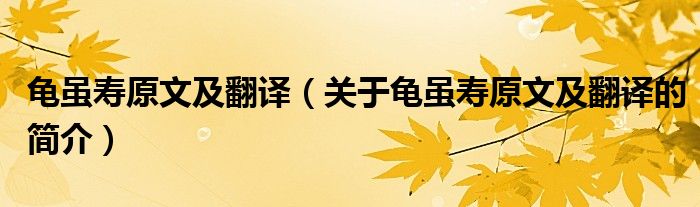 本文关于龟虽寿原文及翻译的简介就讲解完毕,希望对大家有所帮助。