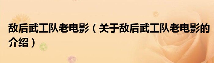大家好,小安来为大家解答以上的问题。敌后武工队老电影,关于敌后武工队老电影的介绍很多人还不知道,现在让我们一起来看看吧!