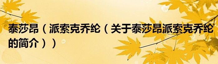 大家好,泰莎昂 派索克乔纶,关于泰莎昂 派索克乔纶的简介很多人还不知道,现在让我们一起来看看吧!