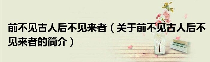 大家好,前不见古人后不见来者,关于前不见古人后不见来者的简介很多人还不知道,现在让我们一起来看看吧!