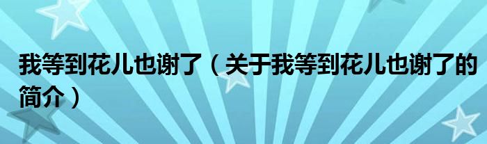本文关于我等到花儿也谢了的简介就讲解完毕,希望对大家有所帮助。