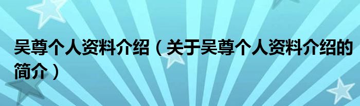本文关于吴尊个人资料介绍的简介就讲解完毕,希望对大家有所帮助。