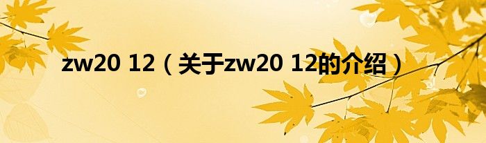 大家好,小安来为大家解答以上的问题。zw20 12,关于zw20 12的介绍很多人还不知道,现在让我们一起来看看吧!