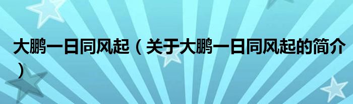 大家好,大鹏一日同风起,关于大鹏一日同风起的简介很多人还不知道,现在让我们一起来看看吧!