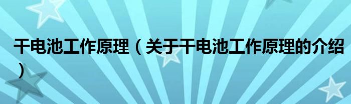 大家好,小安来为大家解答以上的问题。干电池工作原理,关于干电池工作原理的介绍很多人还不知道,现在让我们一起来看看吧!