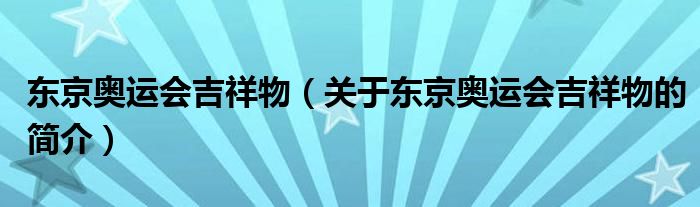 本文关于东京奥运会吉祥物的简介就讲解完毕,希望对大家有所帮助。
