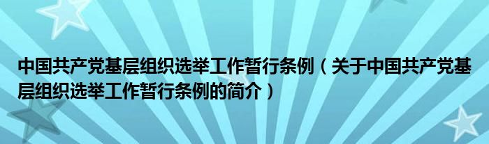 本文关于中国共产党基层组织选举工作暂行条例的简介就讲解完毕,希望对大家有所帮助。