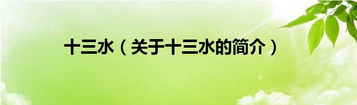 大家好,十三水,关于十三水的简介很多人还不知道,现在让我们一起来看看吧!