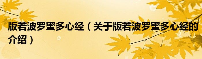 大家好,小安来为大家解答以上的问题。版若波罗蜜多心经,关于版若波罗蜜多心经的介绍很多人还不知道,现在让我们一起来看看吧!