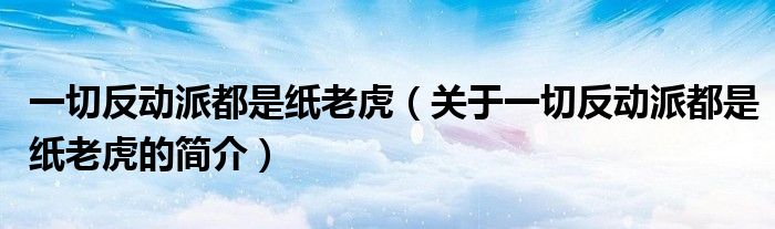 大家好,一切反动派都是纸老虎,关于一切反动派都是纸老虎的简介很多人还不知道,现在让我们一起来看看吧!