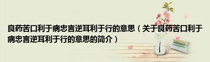 大家好,良药苦口利于病忠言逆耳利于行的意思,关于良药苦口利于病忠言逆耳利于行的意思的简介很多人还不知道,现在让我们一起来看看吧!