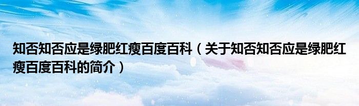 本文关于知否知否应是绿肥红瘦百度百科的简介就讲解完毕,希望对大家有所帮助。