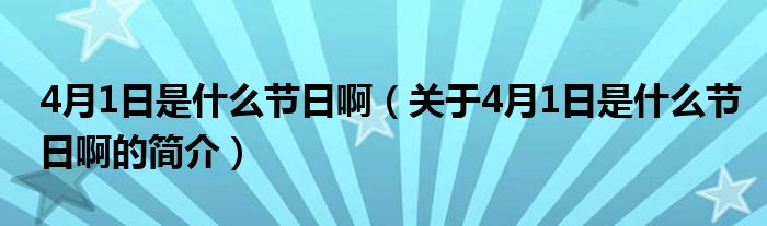 大家好,4月1日是什么节日啊,关于4月1日是什么节日啊的简介很多人还不知道,现在让我们一起来看看吧!