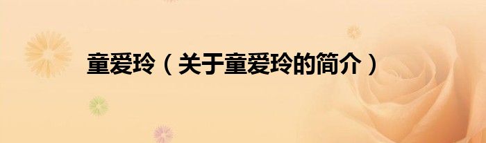 大家好,童爱玲,关于童爱玲的简介很多人还不知道,现在让我们一起来看看吧!