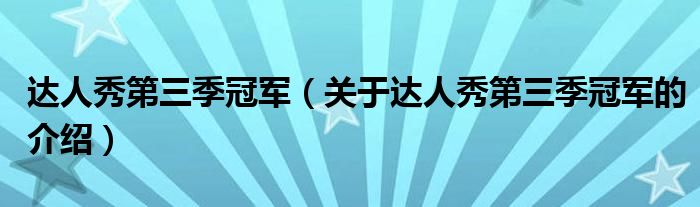 大家好,小安来为大家解答以上的问题。达人秀第三季冠军,关于达人秀第三季冠军的介绍很多人还不知道,现在让我们一起来看看吧!