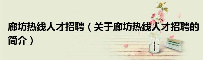 本文关于廊坊热线人才招聘的简介就讲解完毕,希望对大家有所帮助。