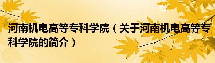 本文关于河南机电高等专科学院的简介就讲解完毕,希望对大家有所帮助。